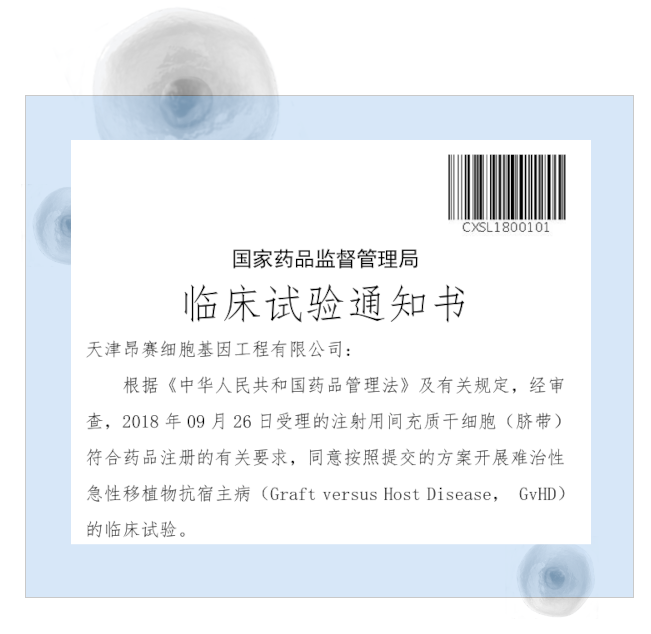 公司擁有標準化的、符合GMP要求的細胞制造車間,并嚴格按照GMP質量體系規范管理的操作流程,研發的Ⅰ類新藥“注射用間充質干細胞(臍帶)”于2020年4月獲國家藥品監督管理局藥品審評中心默示許可進入臨床試驗。